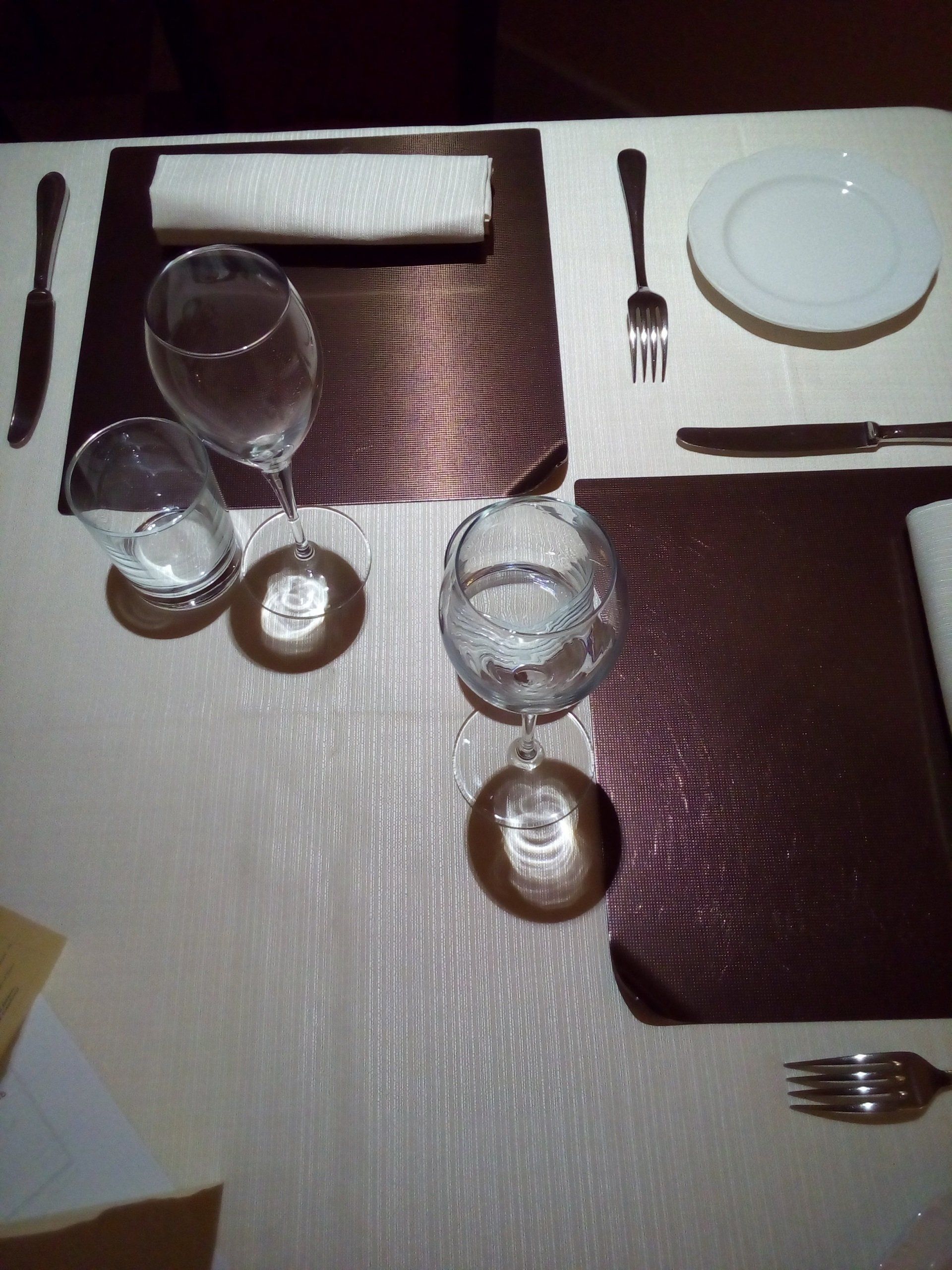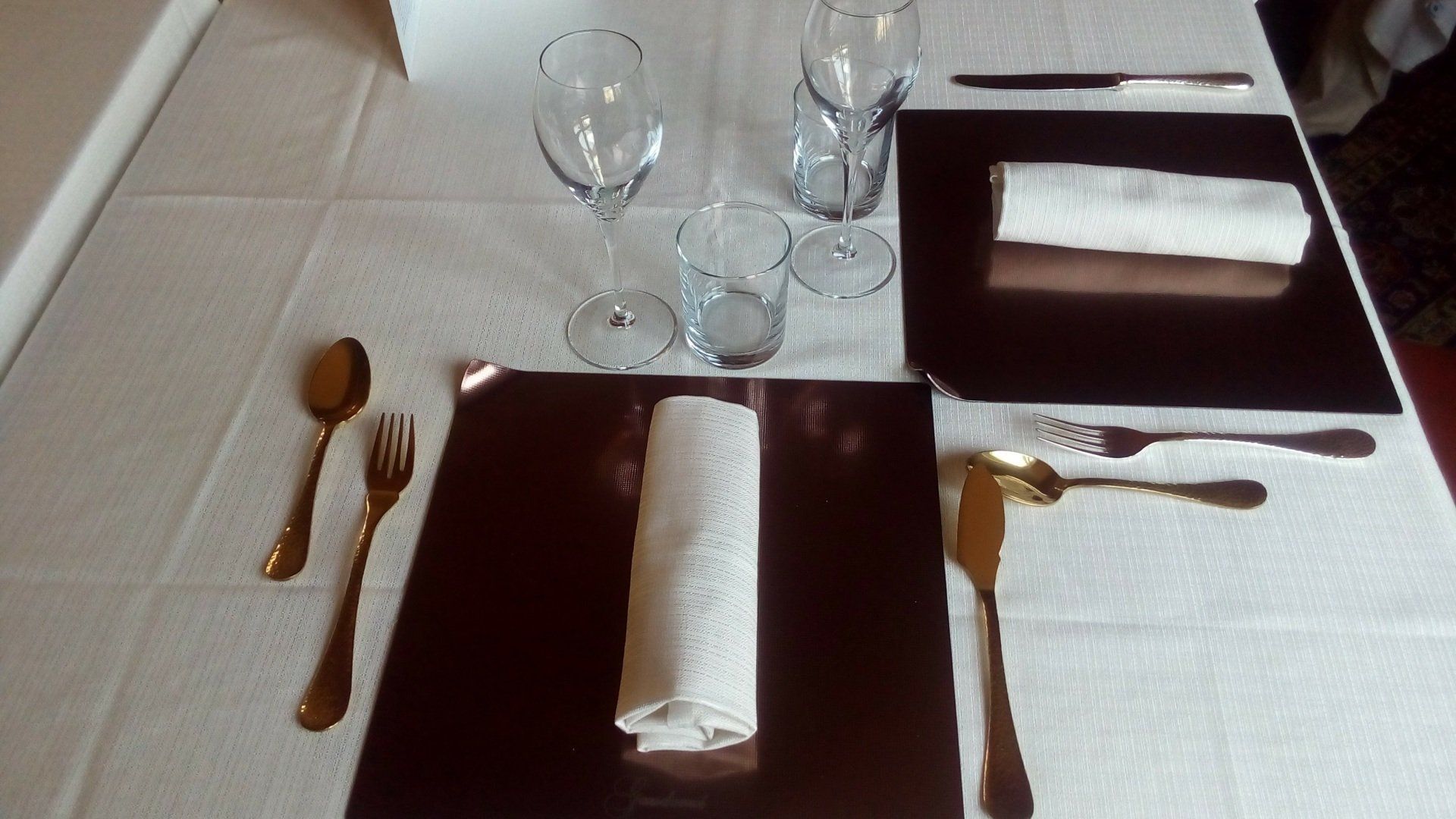 molto capienti, tavoli più ampi rispetto al consueto, piatti di porcellana